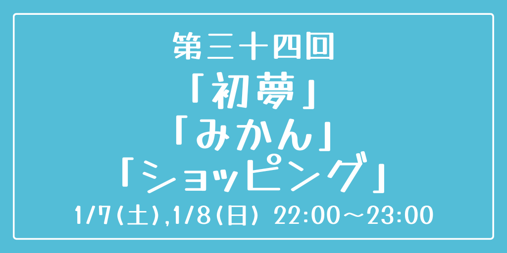 [第三十四回] 開催日時:1月7日(土)、8日(日) 22:00~23:00 お題:「初夢」「みかん」「ショッピング」 3つのお題全てを使用していただいても、1つ・2つのみの使用でも結構です。 完成後 #重行ワンドロワンライ のタグを付けて投稿してください。 詳細なルールはツイフィールをご覧ください。