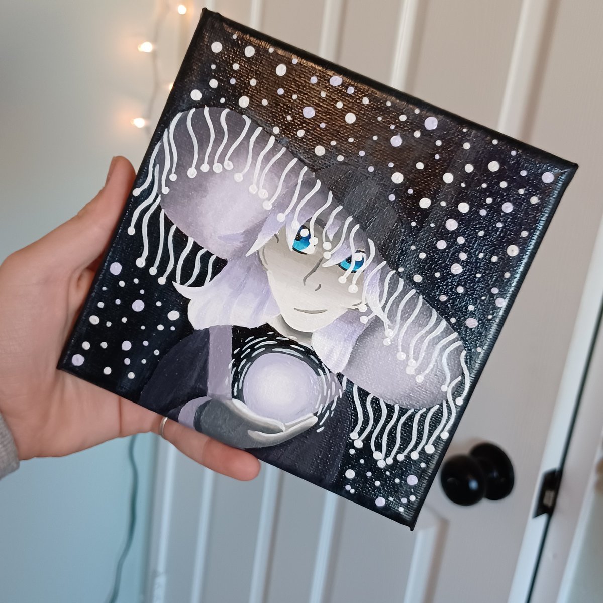 My painted submission for the #deadmandtiys! I absolutely hyperfixated on this and it gave me such good practice on lighting and shadows for painting! yes the first one is edited but it looks so cool regardless! (3rd is me holding it to prove its painted) #philzafanart #philza