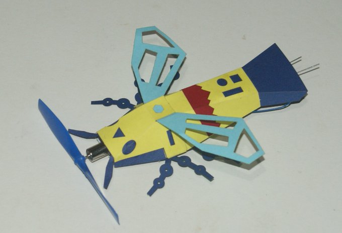 商品化しました ぶんぶんロケットのオマージュです ハンドメイドサイトで販売してます minne.com/@colt1911 マズはスズメバチです 本体価格1200円です 充電器は別売りです #夏休みの工作 にいかがですか コンデンサの在庫が5個しかありません 欲しい人は、お早めに #ペーパークラフト #スズメバチ