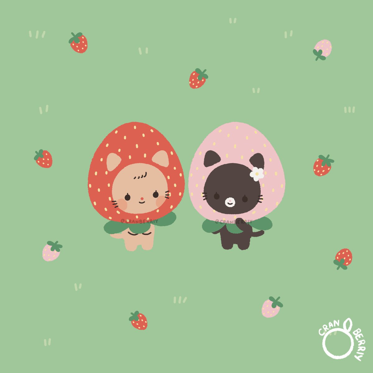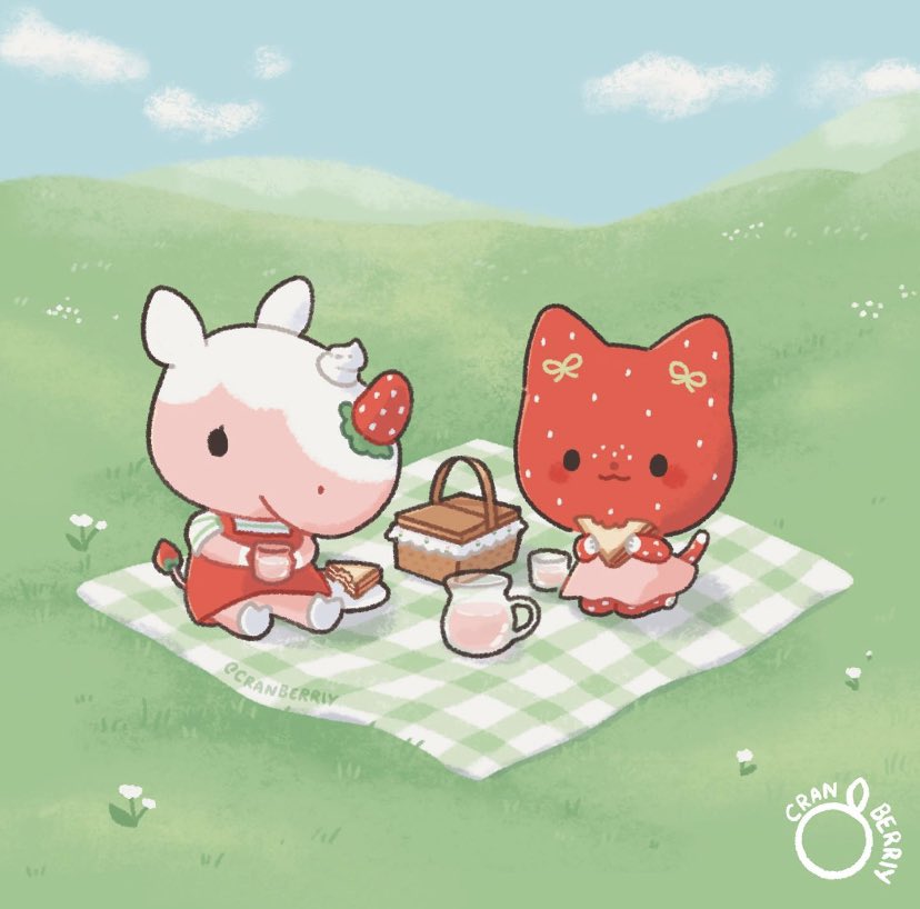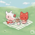 strawberry picnic 🍓🧺🌷 merengue and my little strawberry cat, Jam!