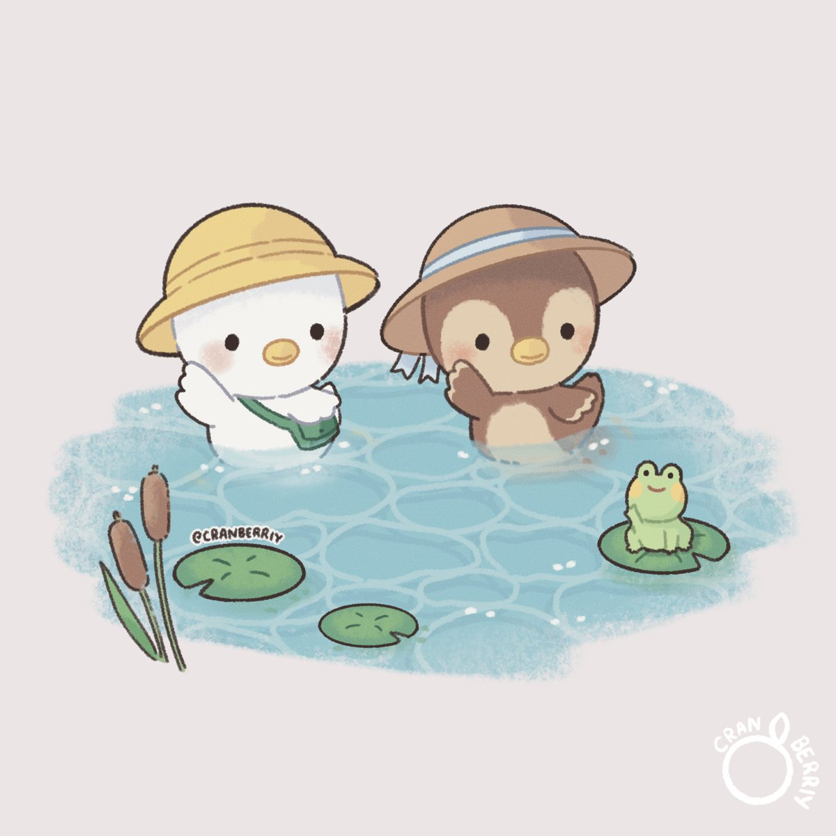 🦆🦆 “hello mr frog !” just two little ducklings out on their morning swim ! 🐸