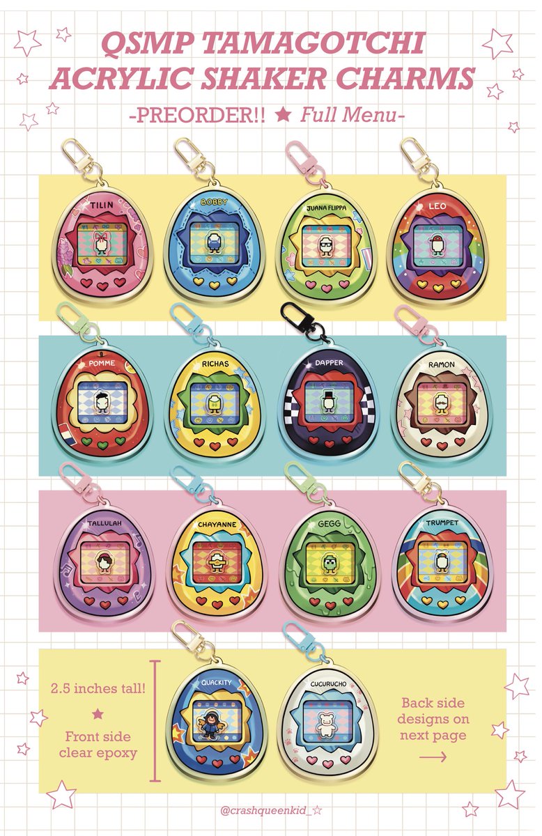 Finished the designs for my QSMP tamagotchi shaker charms!!! Preorders will be opening on Saturday >:D twitter.com/crashqueenkid_…