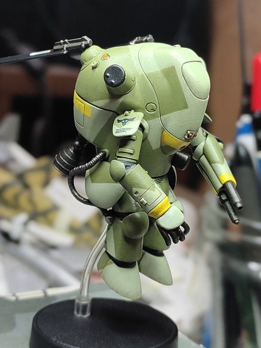 近所のホームセンターで投げ売りされてた「パティオペイント」という名のアクリル塗料のテスト名目でガチャーネンのカウツを仕上げてみました。下地にラッカー塗っておけばプラスチックでも十分に塗装可能。色がイイので他にも作って塗ってみようかと思いました。 #マシーネンクリーガー