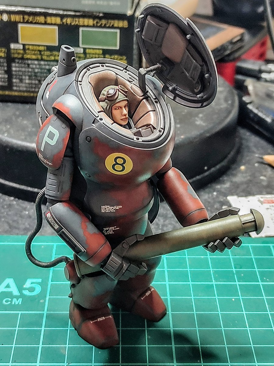 WAVE製1/20スケールSAFS Mk.Ⅲ A8/R8。これにて完成〜。イケメン機体なので汚し塗装もそこそこにとどめてキレイ目に仕上げてみました。とても満足度の高いキットだと思います。欲を言えばフィギュアは新規造形のものを入れて欲しかったかも。今回は同社製ラクーンより選抜。 #マシーネンクリーガー