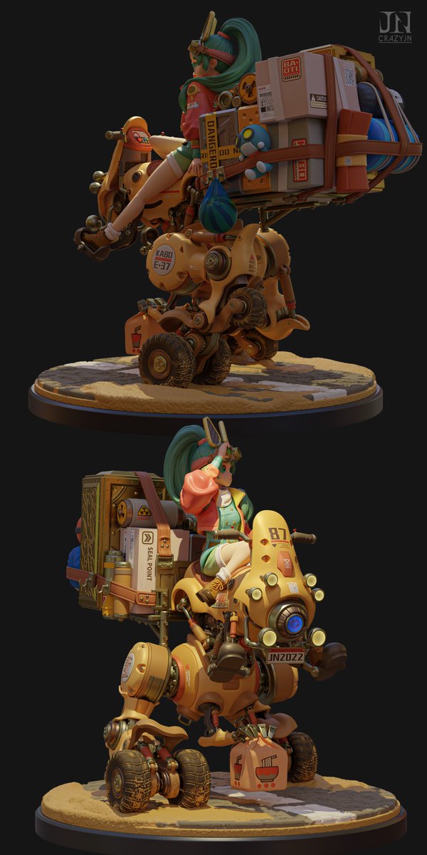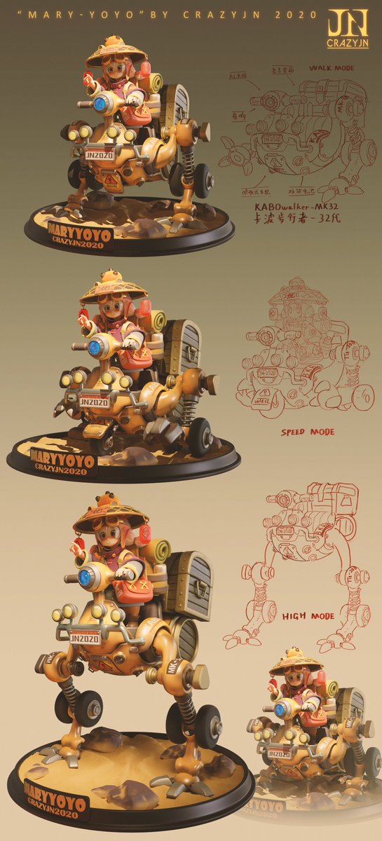 彼女は、旅行商人メアリーヨーヨーです! 限られた数の彫像が作られ、今年発表される予定です。 この車には3つの形態がありますよ。 #b3d #Blender3D