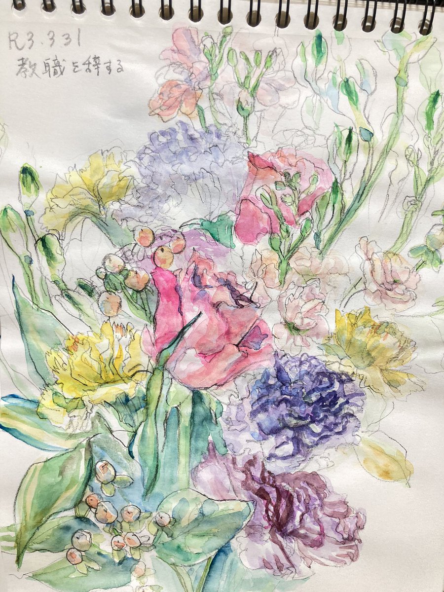 4 67 新しい季節への花向けに #水彩画 #花 #花束 21/04/01 07:52