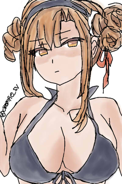 #シャドバ版深夜の真剣お絵描き60分一本勝負 #シャドバ お題 水着 ネフィリオ「ジンジャー!頼む!この水着を着てくれ!俺は本当に、お前が好きなんだ!」 ジンジャー「バカ…あなたったら、本当に…」 ネフィリオ「返す言葉もない」(胸を見ながら)