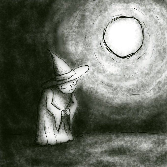 Day 16: Moonlit Wizard Trembling #promptober2021 #promptoween2021 #inktober2021 #drawlloween2021 #clipstudiopaint