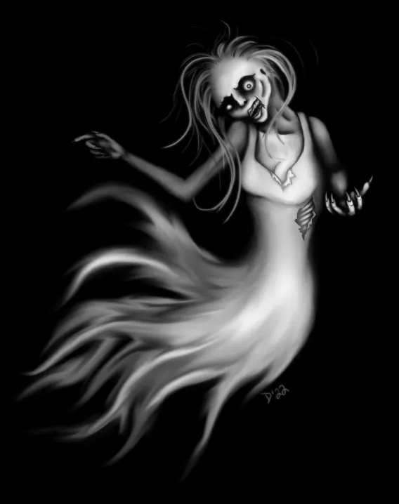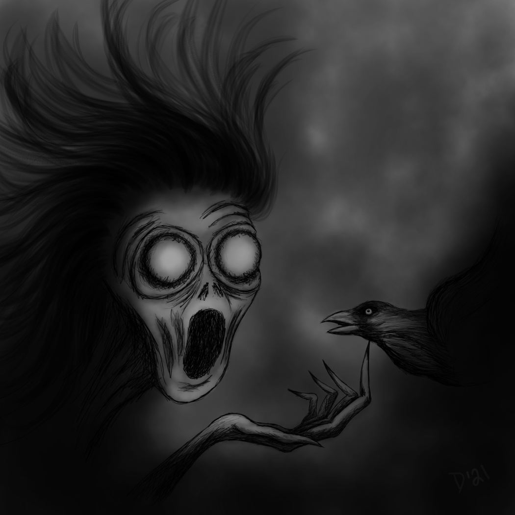 Day 28: Frightening Banshee Scratching a Misty Raven #promptober2021 #promptoween2021 #inktober #digitalart #clipstudiopaint #halloween