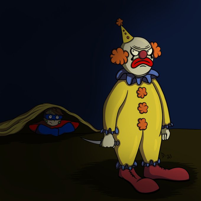 Day 29: Afflicted Superhero Hiding from a Wretched Clown #promptober2021 #promptoween #inktober #digitalart #halloweenart #clipstudiopaint