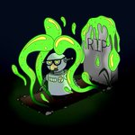 Day 23: Gooey Headstone Tormenting a Disguised Robot #promptoween2021 #promptober2021 #halloween #digitalart #inktober #clipstudiopaint