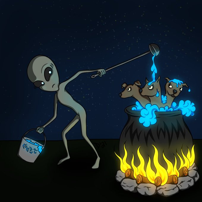 I can't believe it's the last day already! Day 31: Cowardly Alien Cooking a Slimy Cerberus #promptoween2021 #promptober2021 #inktober #drawlloween #happyhalloween #digitalart #clipstudiopaint #timelapse