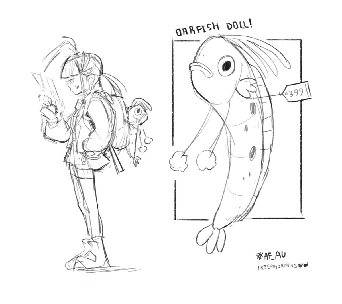 สเก็ตช์เล่นๆ กับตุ๊กตาออร์ฟิช ถ้าชอบหน้ามัน ก็ลองไปหามาสะสมกันดูนะครับ ถถถ #AF_AU
