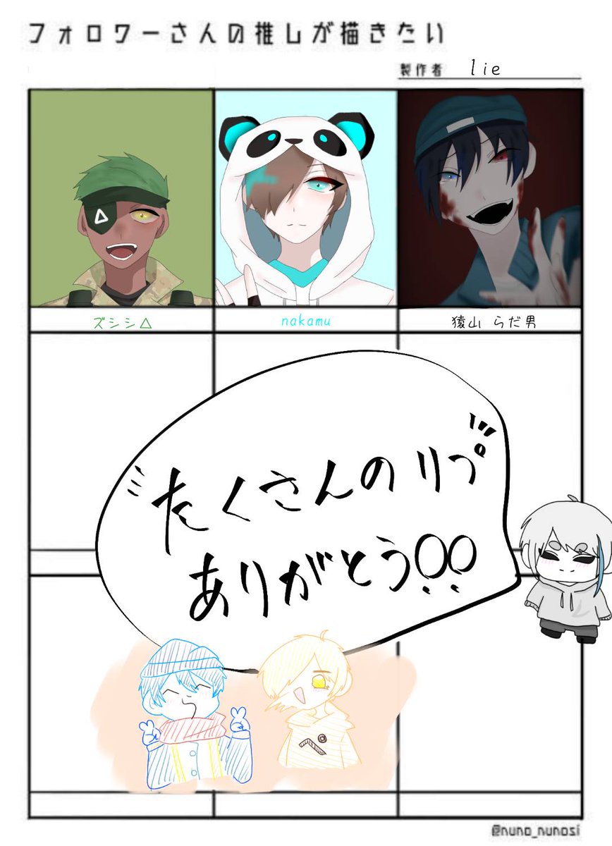 #フォロワーさんの推しが描きたい たくさんのリプありがとうございました!!! 少し雑な所も多々ありますが、 許して😘💕 それと単体絵もあげるかもです💦 全然来年じゃなかった😂😂