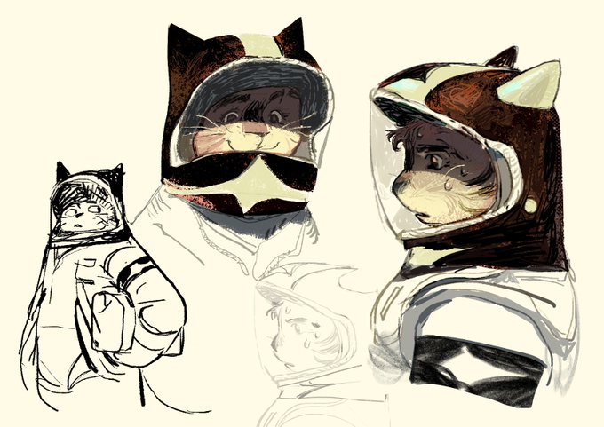 another space kitty exploration, middle one is based off a drawing by t. kuichi and i went from there