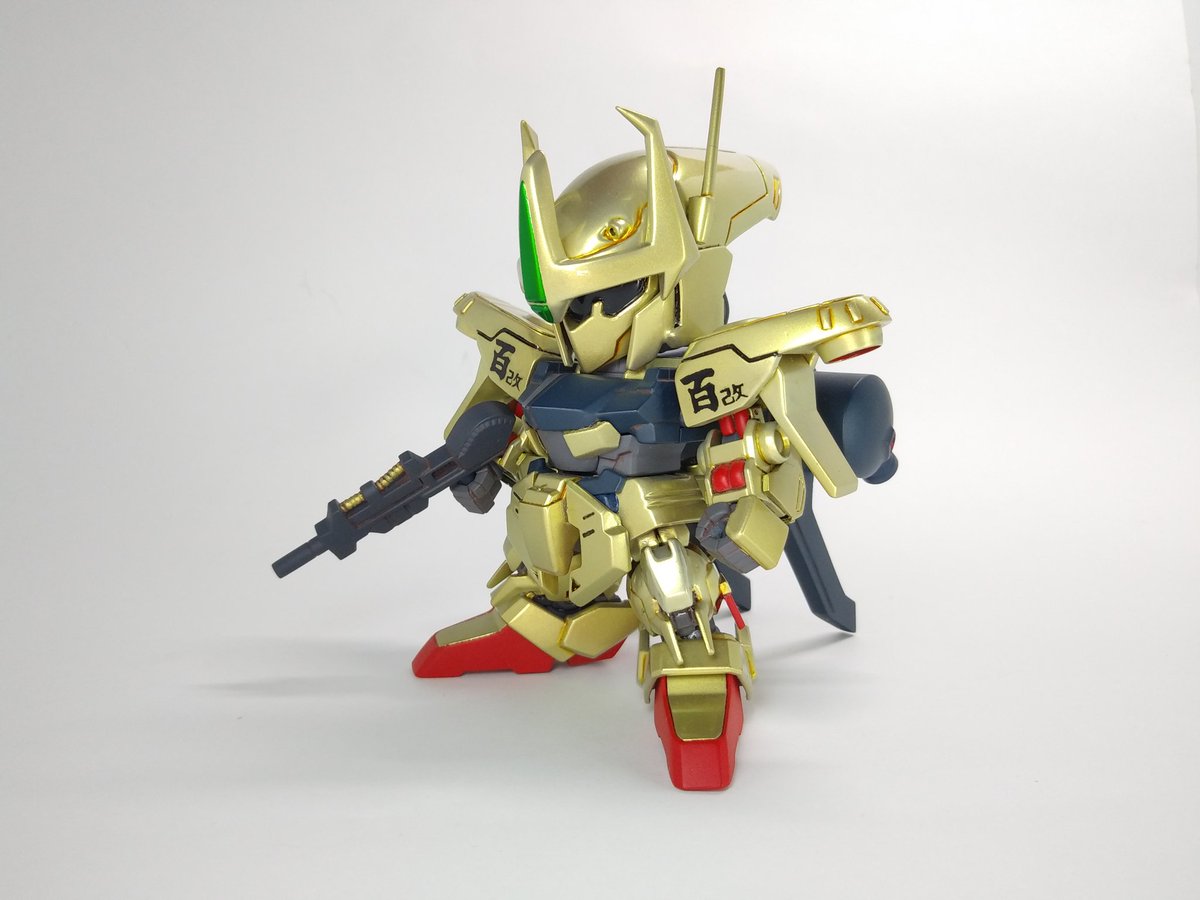 百式改は全身の塗装より肩の百改の文字が手描きなんだけど、両肩とも全く同じ書体とサイズで書くのに手こずったなぁ…(白目) キマリスゼファーは〆切に追われる中で本体の色を勘で調色するのが大変だったかも #これを見た人は塗装前と塗装後を貼れ