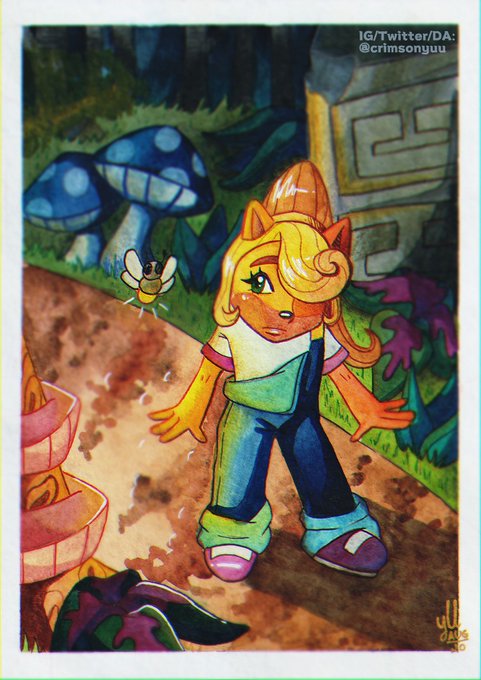 Night fight🍄🦋 This is a scan and edit of my traditional piece! #CrashBandicootFanart #CrashBandicioot #Art