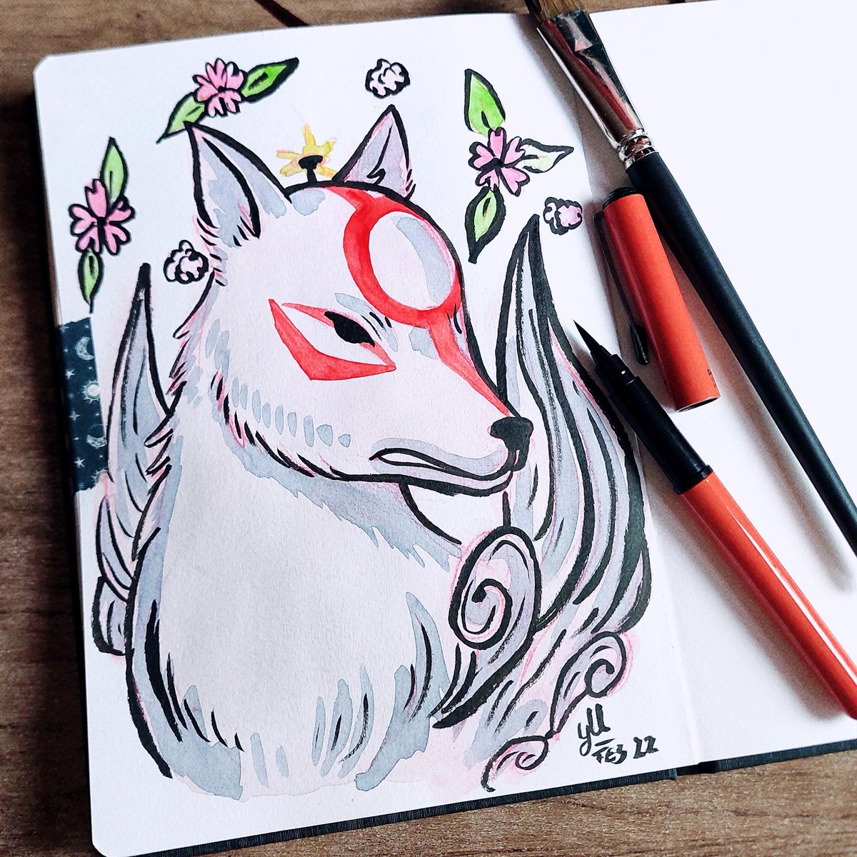 Finally finished Okami and decided to do some fanart. Here is Ammy done with watercolor and brushpen! #Art #watercolor #brushpen