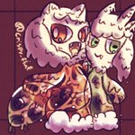2 6 #人外版深夜の真剣お絵描き60分一本勝負 お題「キマイラ」「スライム娘」 ペアクリームソーダスライムの子🥤 「娘」なのにオスのライオンの頭とは...🤔 22/12/24 00:02