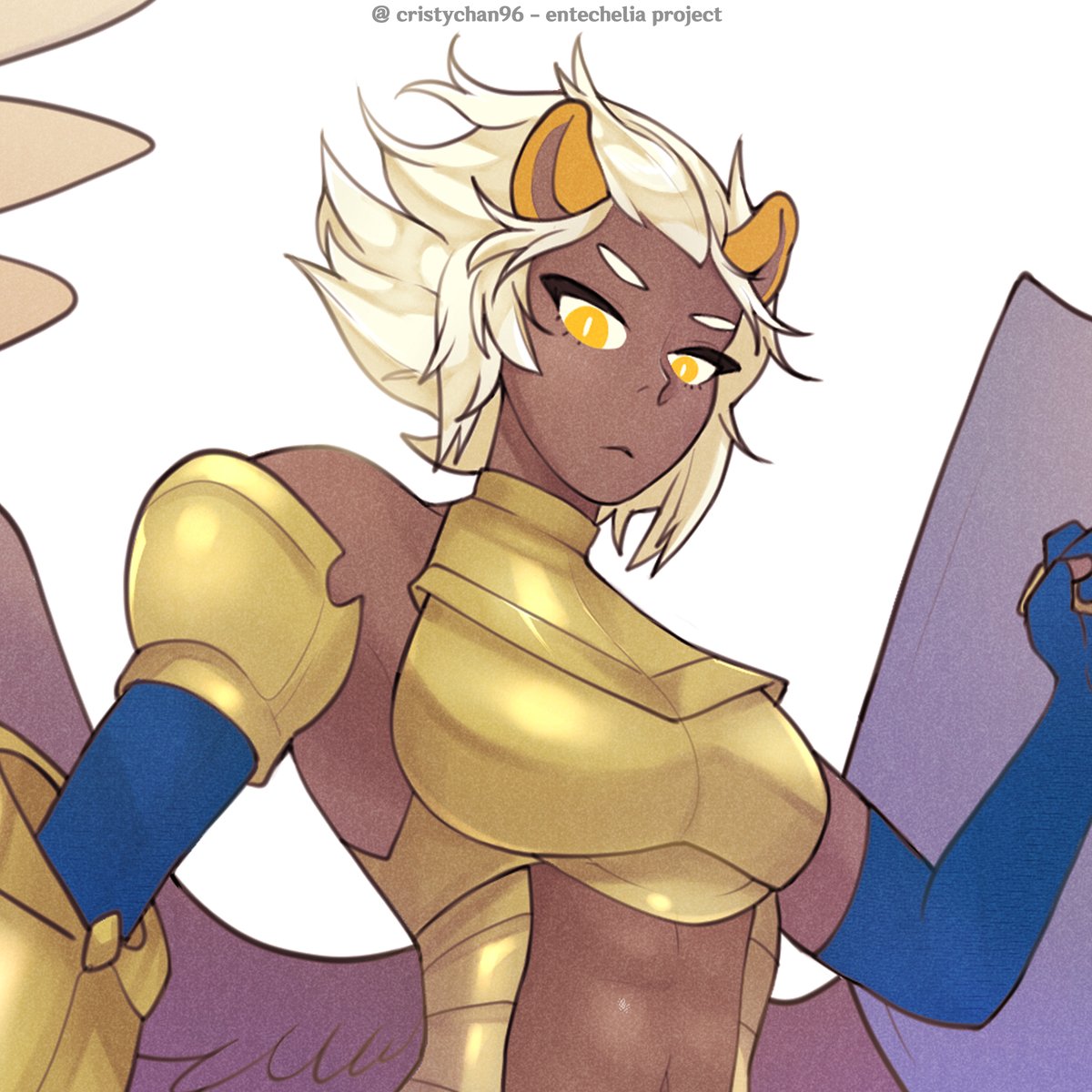 Eurydice represents Justice. She never sleeps and always has keen eyes, ready to bring justice upon every sin with her Sword made of Light. Together with Connye, she fights for a pure world, without any kind of injustice. #characterdesign #characterart