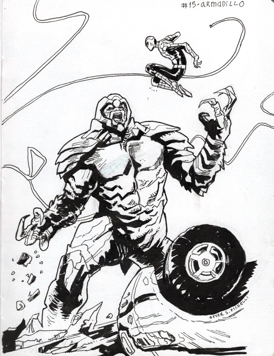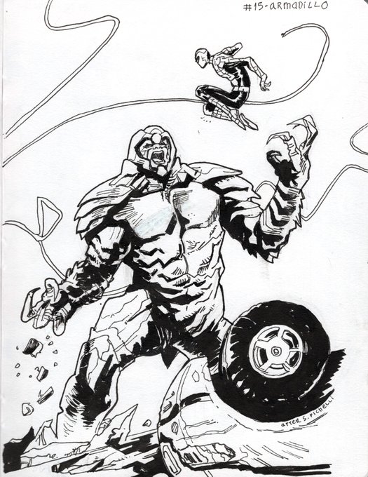 ¿Creíais que no se me ocurriría nada para el prompt de #armadillo ? Pues llevabais toda la razón. Así que tiro de lo obvio y aprovecho para dibujar al Spiderman de Sara Pichelli, que aún no había metido a ninguna artista #inktober2022 #comictober #day15