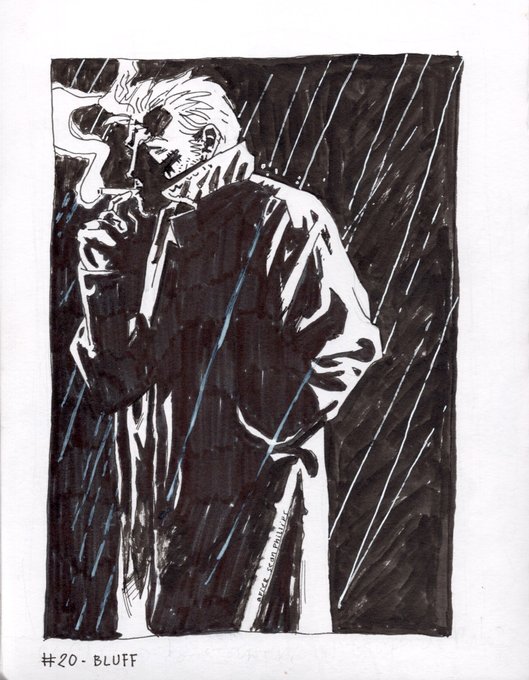 Hoy en #inktober2022 toca #bluff así que me traigo al John Constantine de Sean Phillips, otro rey del blanco y negro