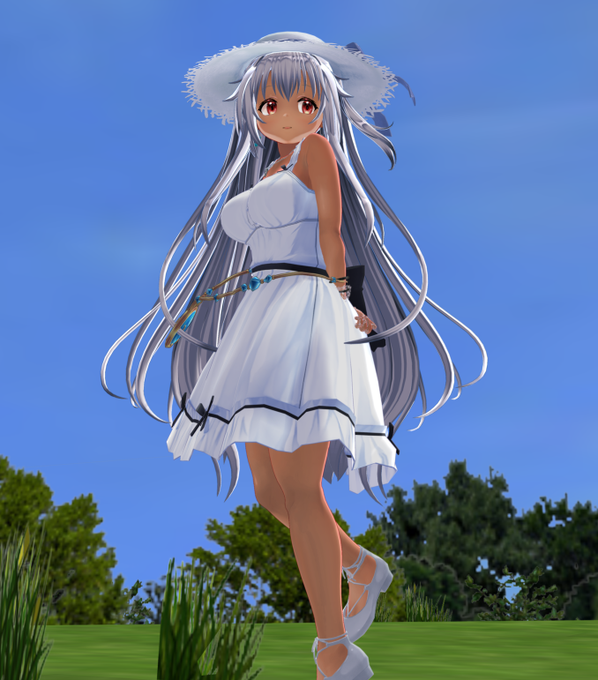 というわけで、 #cm3d版深夜の真剣エディット60分一本勝負 #COM3D2 #カスタムオーダーメイド3D2 お題「 褐色 白ワンピ 」 スーパー久しぶりの新規エディット。初褐色 & 初白髪 にチャレンジしてみた。