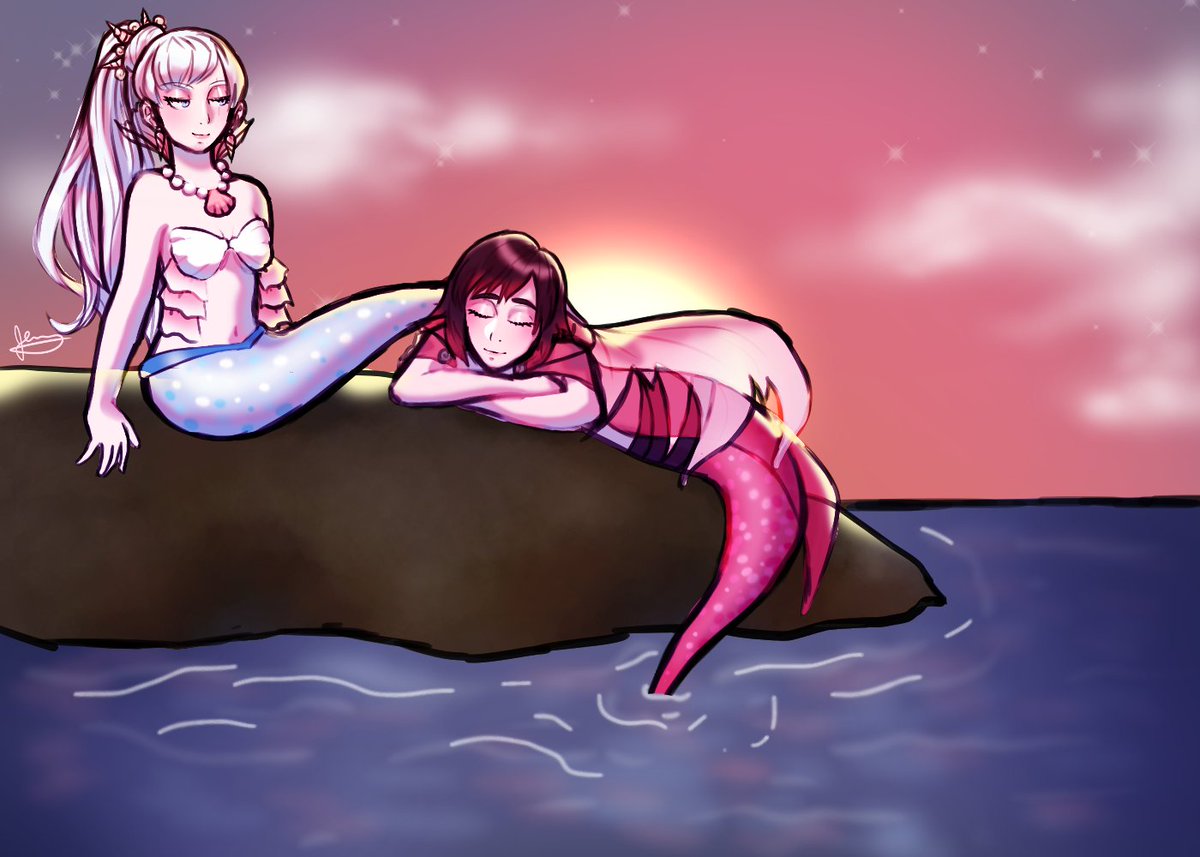 It's no longer May but this was the only other piece I did for mermay 🥺 I love these two so much and they were so fun to draw :)) #whiterose #rubyrose #weissschnee #rwby #mermay