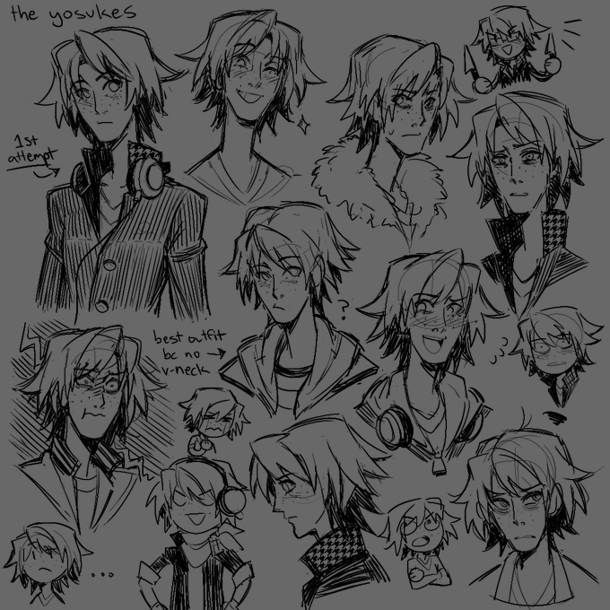 for some reason sketching a bunch of akechis was the most relaxing thing i've done all week #persona5 #goroakechi