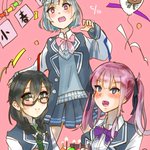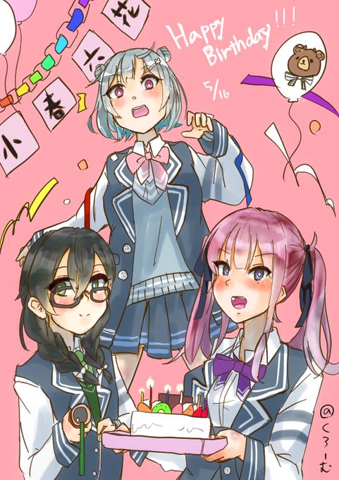 #小春六花誕生祭2023 花梨パイセン「六花、誕生日!」🎂 千冬ちゃん「おめでとうございます!」🎉 六花ちゃん「おうわぁっ!?びっくりした!」 仲良しな雰囲気の六花ちゃん達を描きました どういう感じで描こうか悩みましたが誕生祭に間に合って一安心 改めまして 六花ちゃん誕生日おめでとう!
