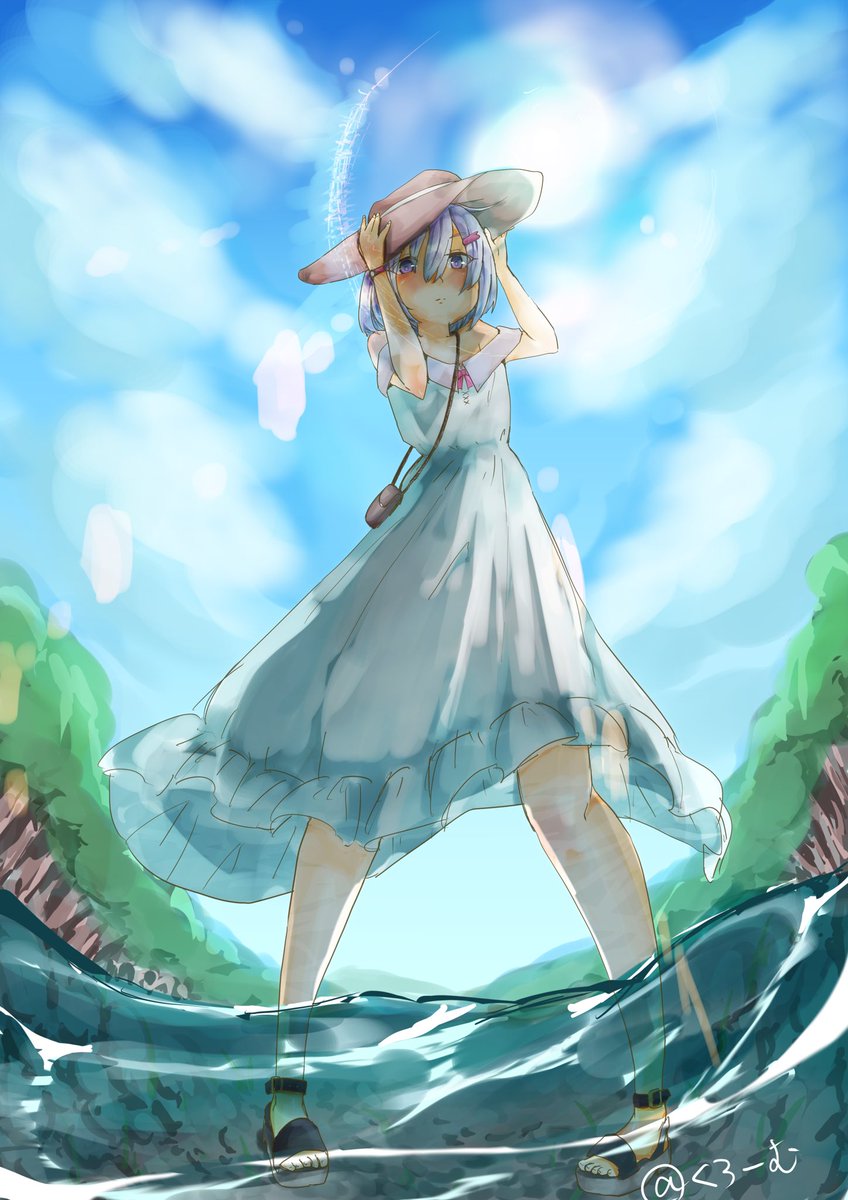 今日のお絵描き 水分摂りなさいよ!的なイラスト ホントは海の日イラスト描いてたつもりなんだけどいつの間にかただの夏イラストになってしまった #イラスト #創作 #絵柄が好きっていう人にフォローされたい