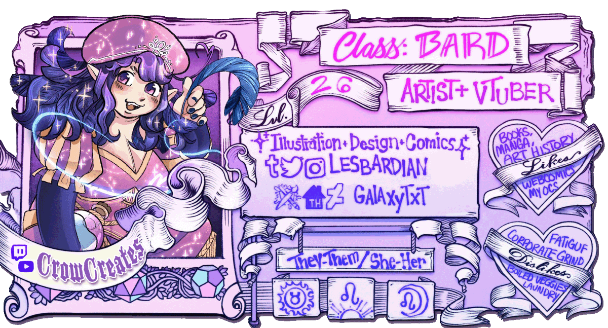 Happy #LesbianVisibilityDay! I gift you... lesbians!! I’m crow, a nb lesbian artist who makes comics and has lots of gay ocs! I’m also a twitch affiliate and VTuber! Also, it’s my bday today!! 🎉🎂