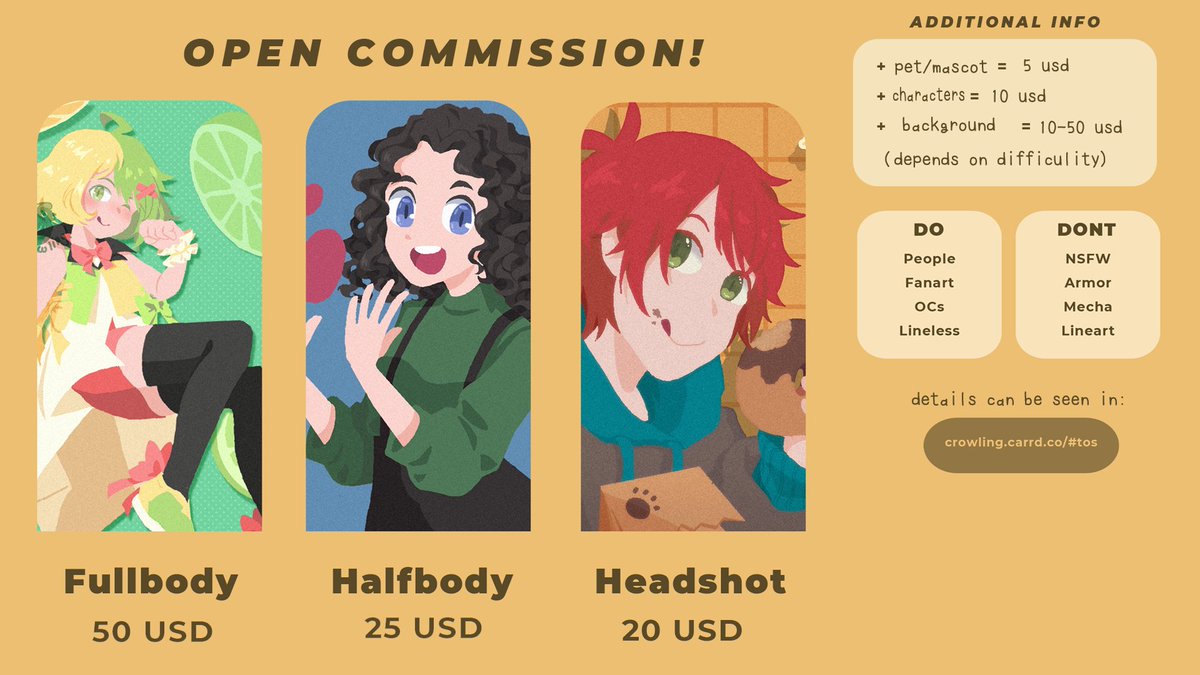 [RTs are very appreciated] opening commission cuz in need of fund! reason below! do dm if interested/have any question #commissionsopen #CommissionSheet #ArtCommission #artidn twitter.com/crowling_/stat…