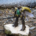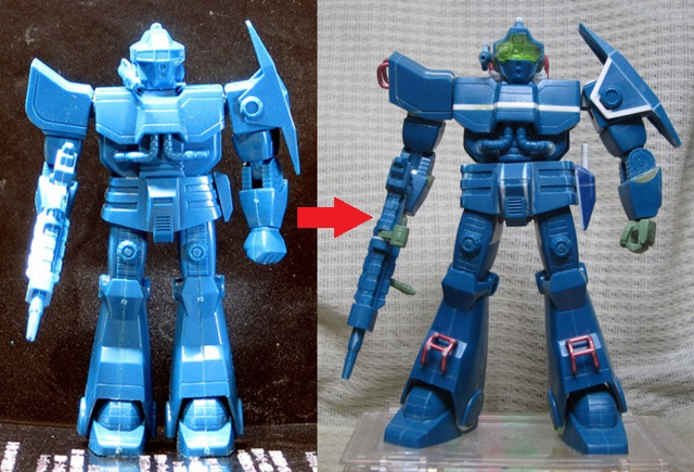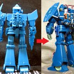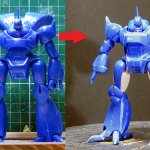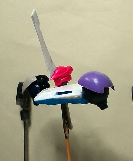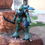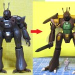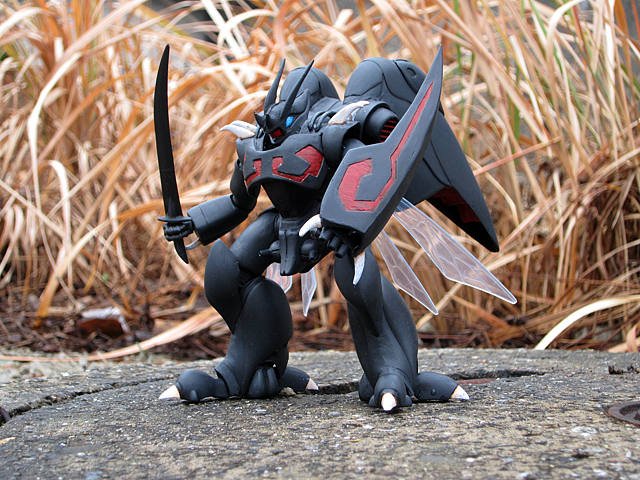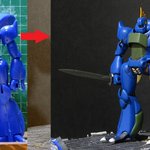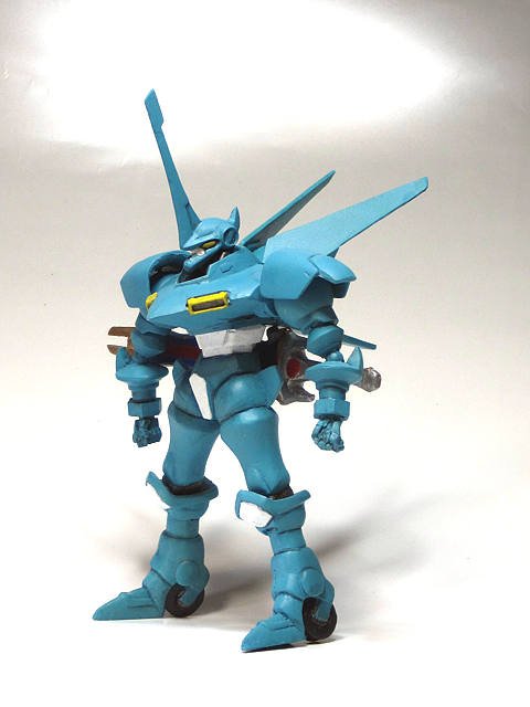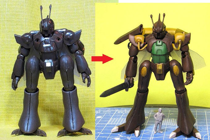 「全身改造ビランビー」(-_-;) 悪名高き1/72ビランビーの徹底改修。胸薄腰太りのオムツ体型の修正、四角いロボット脛を切開し尖らせる、ベタ足の爪を立たせる、頭部の鶏冠・頬袋・目の位置の変更等々、全てに手を入れて自分の納得いく形にたどり着いた労作。 #誰にでも自分だけのオーラバトラーがある