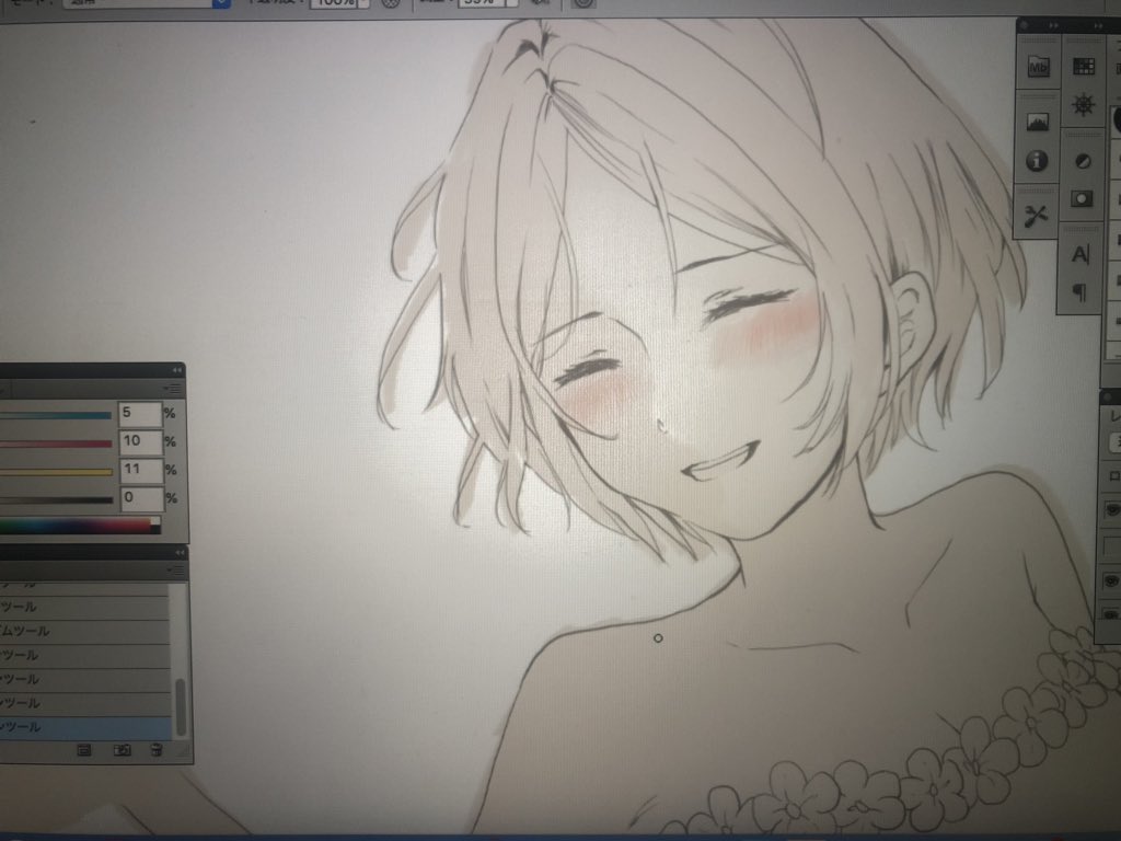 まだお顔だけ。自分の絵柄に寄せた昴。
