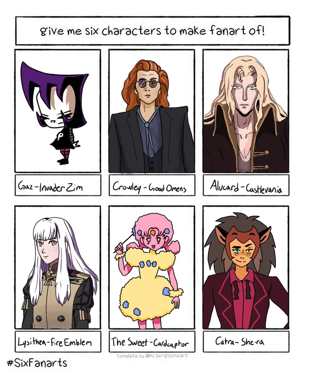 and here’s a six fanarts I did over on instagram #SixFanarts #SheRa #Castlevania #InvaderZim #GoodOmens #Cardcaptor #FireEmblem