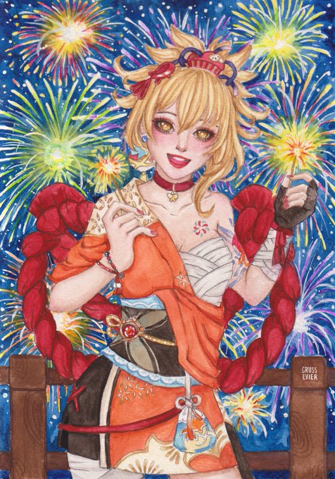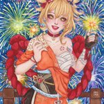Fireworks are for now, but friends are forever! - Naganohara Yoimiya #GenshinImapct #genshinimpactfanart #Yoimiya #Watercolor #Genshin