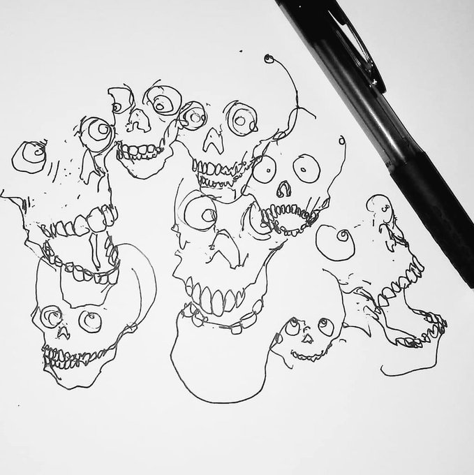 1 4 Some old skulls off my other other IG. I keep forgetting to doodle new stuff..and it goes w the #Halloween #spooky #October theme. #Doodles #drawing #sketches #sketchbook #illustration #PenandInk #Inktober #drawtober #draw #work 21/10/20 08:40