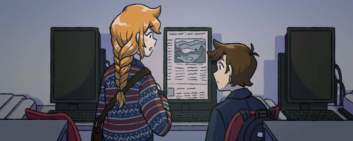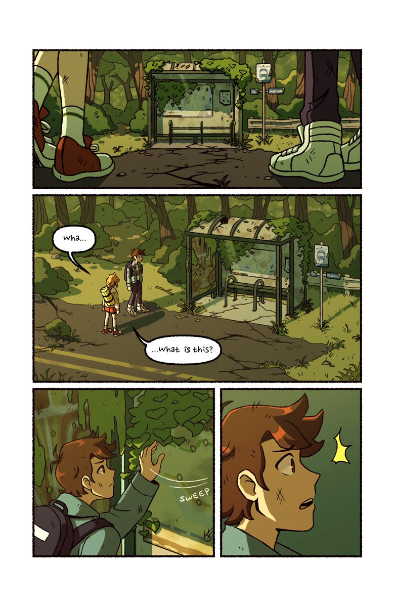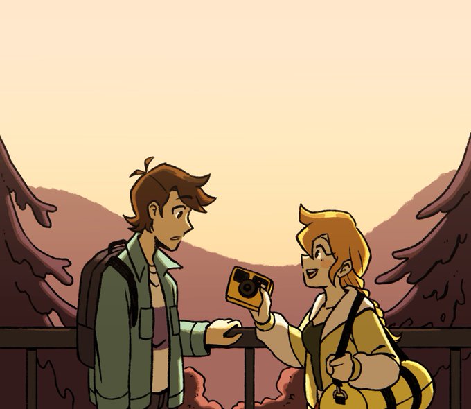 *GASPS* happy #webcomicday !! I make Ash in the Wind, a paranormal romance about 2 college students lost in the woods while investigating a weird old book from the library 🍃🏕️ It's coming back from hiatus next month!