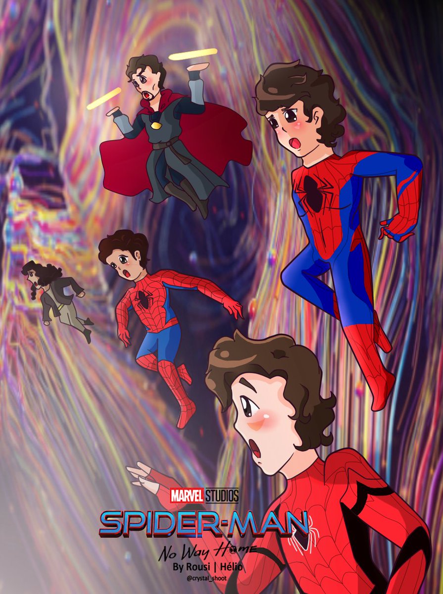 My #SpiderManNoWayHome fan made poster in anime style! With Peter (Tom Holland, Tobey Maguire and Andrew Garfield), MJ (Zendaya) and Doctor Strange (Benedict Cumberbatch) #ArtistOnTwitter #artwork #Marvel