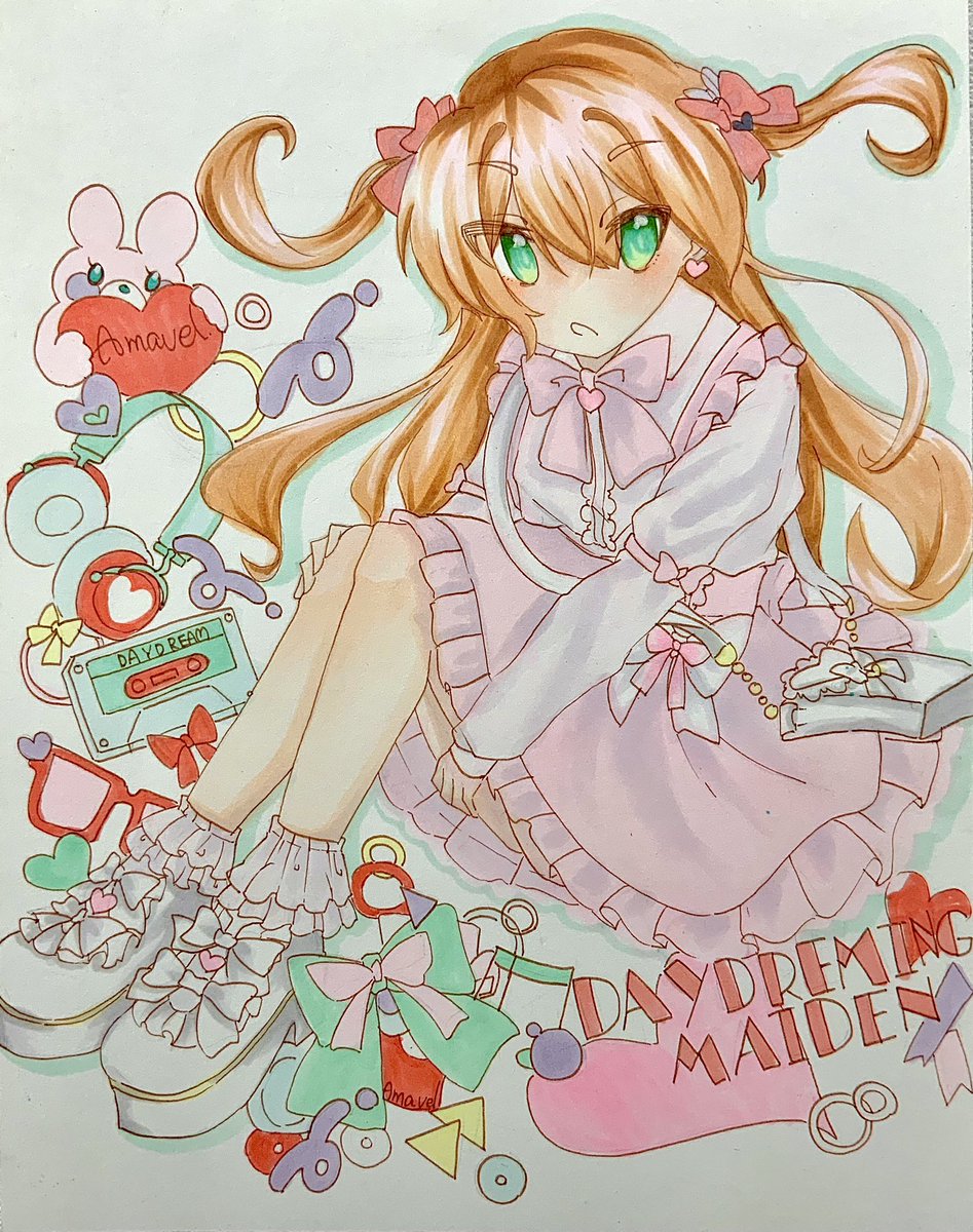Amavelさん、DAYDREAMING MAIDENシリーズのファンアート描きました〜!!とっても可愛くて大好きです💞💞 (刺繍まで細かく描けてなくて申し訳ないです💦) #イラスト #Amavel #アマベル