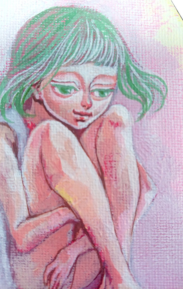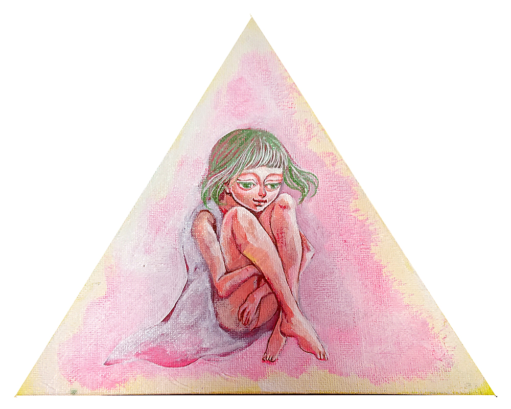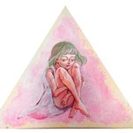 『さしもたる虚飾-すがた-』 gallerycomplex.shop-pro.jp/?pid=166623778 同じタイトルの別サイズ・角度の作品です。 三角キャンバスは納め方が独特になるんですが 三角座りの綺麗なポーズが出来ればいいな、と思って描きました。 #アート #art #油絵 #oilpainting