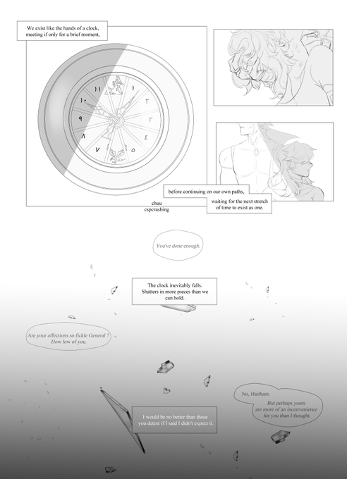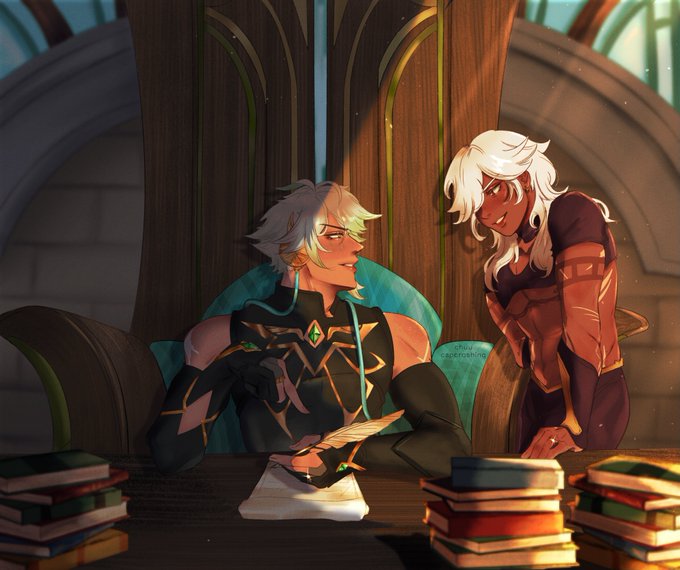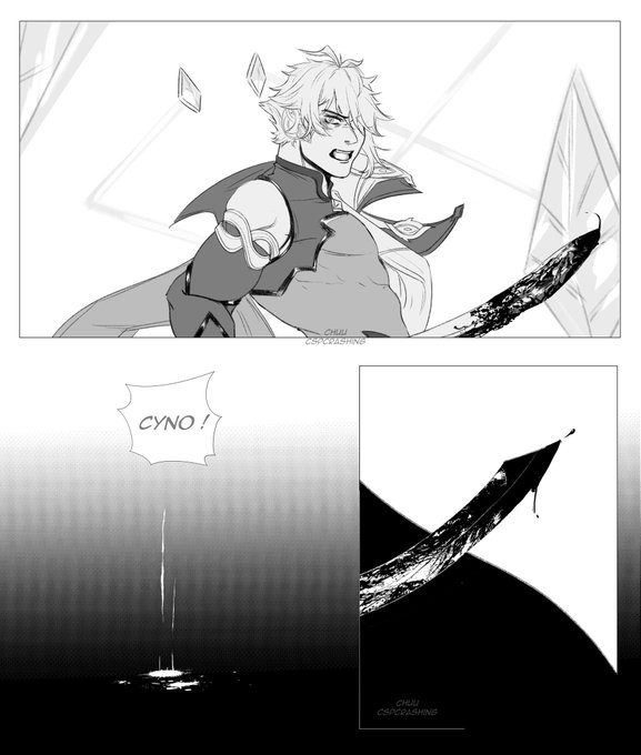 c : "you're late." h : "and you're going to make me fall to my death someday." "it's a good spot." "the roof of the akademiya is a good spot to you ?" "...it's high." HAPPY BELATED BIRTHDAY CYNO ! #セノ生誕祭2023 #genshinimpact #原神 #cytham #haino #cyno