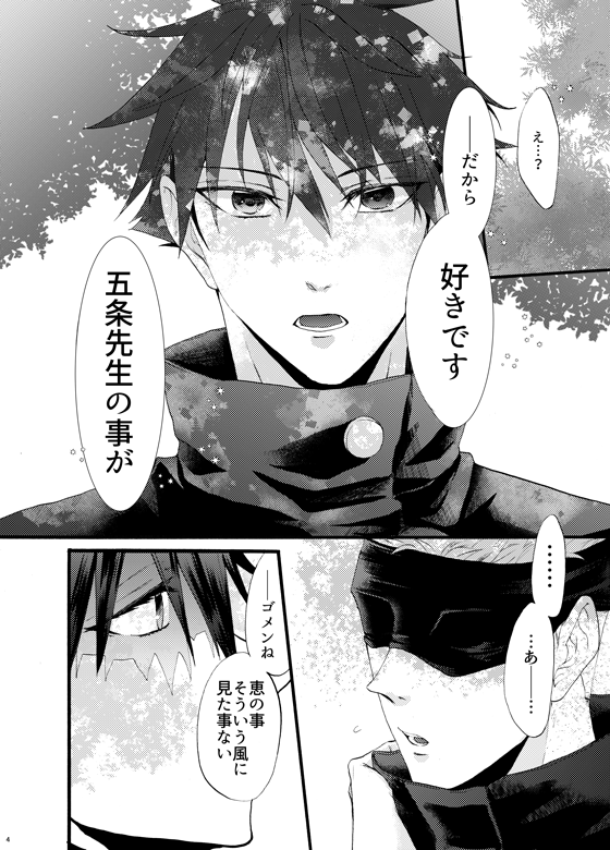 5/4 スパコミ新刊サンプル【五伏】 『だれかが恋したレモネード』 A5/70P メに告白されたけど恋とか分からなくて振ってしまった五が、だんだんメに恋していく話(本当にここまでしかおわってないのでサンプル後半は脱稿したら上げます…) 1/6 #0504愛しさとめぐる運命_サンプル