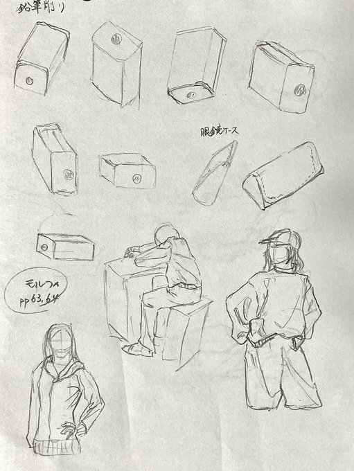 1 23 イラスト515日目 箱を描く 胸郭を箱で描く前に箱を描けるようになろう、ということで、 鉛筆削りを様々な角度で置いて描いてみました。 箱の練習をした後ちょっと人体上手くなった気がしたのでおすすめです 22/07/26 22:50