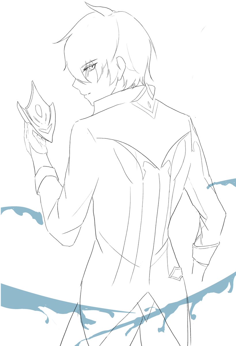 1 20 イラスト598日目 以前描いたラフの線を描きました。 装飾品は後から描く、線を(場所によって)あえて汚くする、ということを意識して続けていきます 22/10/18 01:41