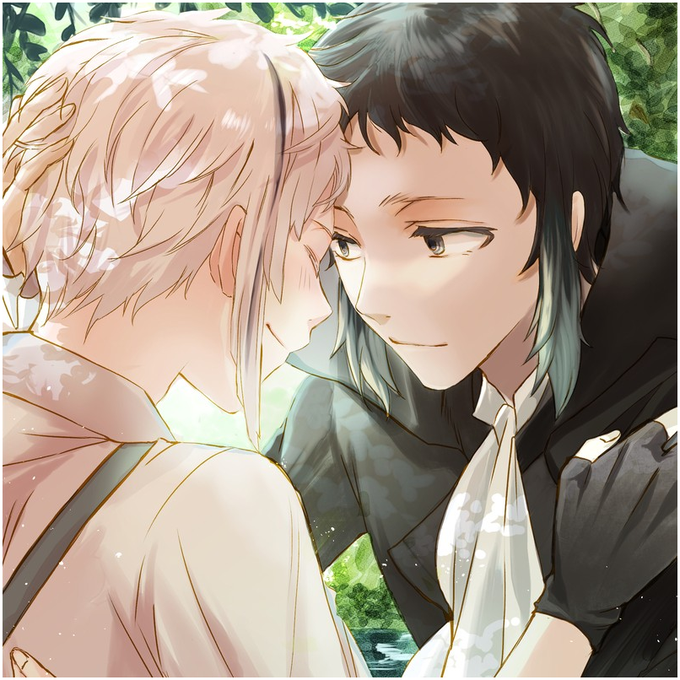 リクエスト「おでこコツンて合わせて幸せそうに笑ってる芥敦」いただきました。 素敵なお題をありがとうございます‼︎描いていて幸せでした☺️ poipiku.com/218549/7411256…