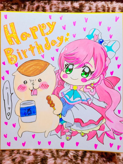 友達が誕生日だから ゆるっとゆるーく 友達が好きなくりまんじゅう先輩とキュアプリズムのイラスト描いた~ また送ろ🍒✨ #ちいかわ #キュアプリズム #イラスト #ちいかわファンアート #illustration