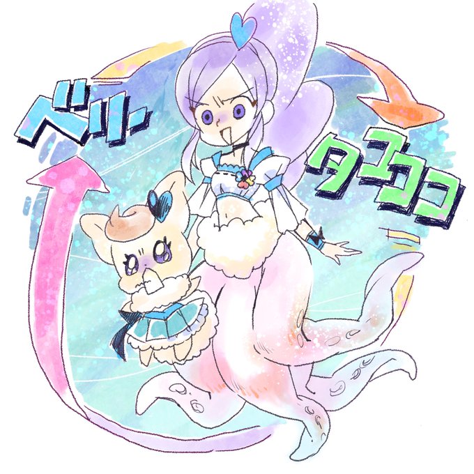 お題「入れ替わり」 ベリーさんとタコココさん、足だけ入れ替わってしまった的な感じです…🐙(ココの髪飾りはオマケ) #プリキュア版深夜の真剣お絵描き60分一本勝負