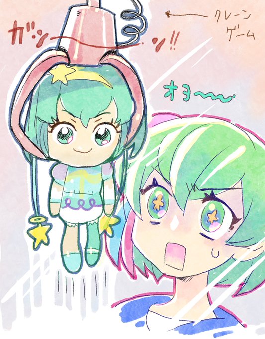 25 69 お題 キュアミルキー/羽衣ララさん 1時間勘違いして遅刻スタート 48分🥲 クレーンゲームでキュアミルキーのぬいぐるみが昇っていくのをみつめるララルン #プリキュア版深夜の真剣お絵描き60分一本勝負 21/06/18 23:53
